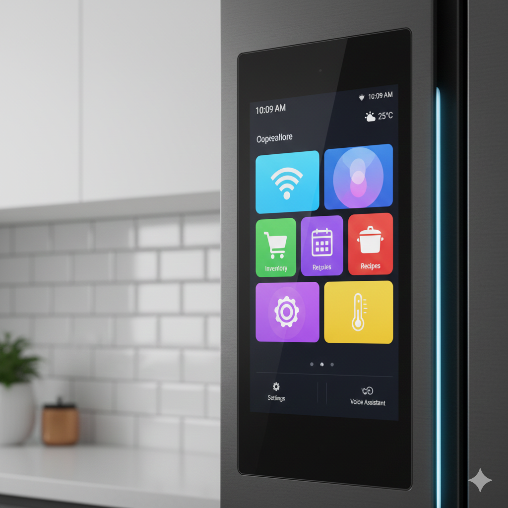 **شاشة العرض الذكية عالية الدقة تتيح لك مراقبة المخزون، وتعيين درجات الحرارة بدقة لكل منطقة، والوصول إلى الوصفات، وحتى عرض التقويم العائلي.